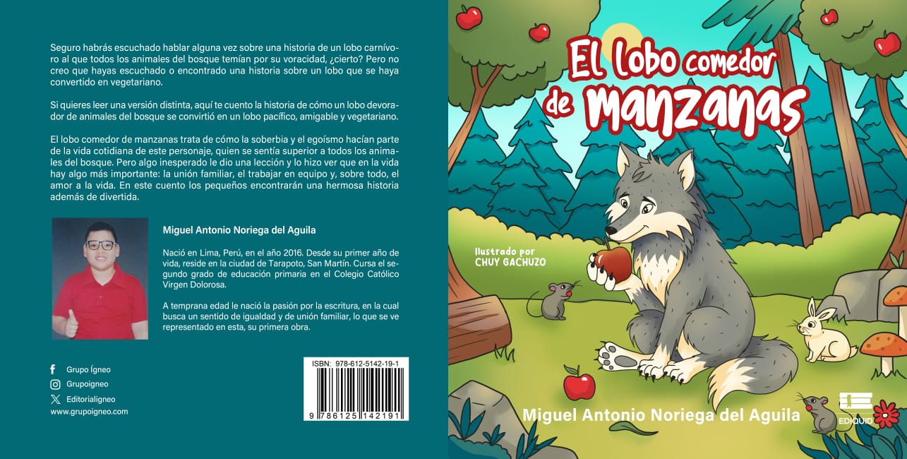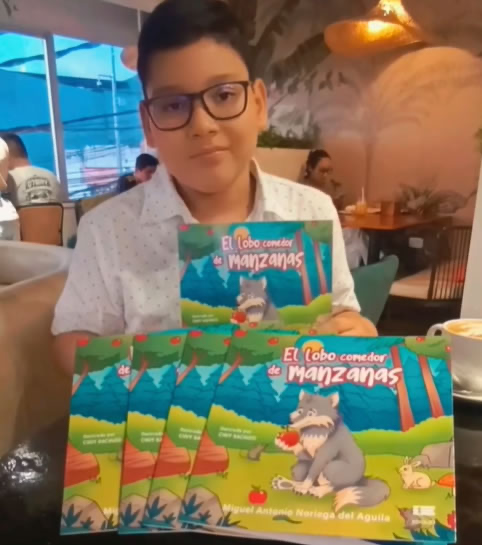 Miguel Antonio Noriega Del Águila destaca como un joven escritor de notable imaginación y sensibilidad narrativa. Creador de «El lobo comedor de manzanas» y «Miguel y la planta mágica», construye universos mágicos donde la fantasía se entrelaza con profundos valores humanos, logrando conectar tanto con el corazón de los niños como con el espíritu de los adultos.